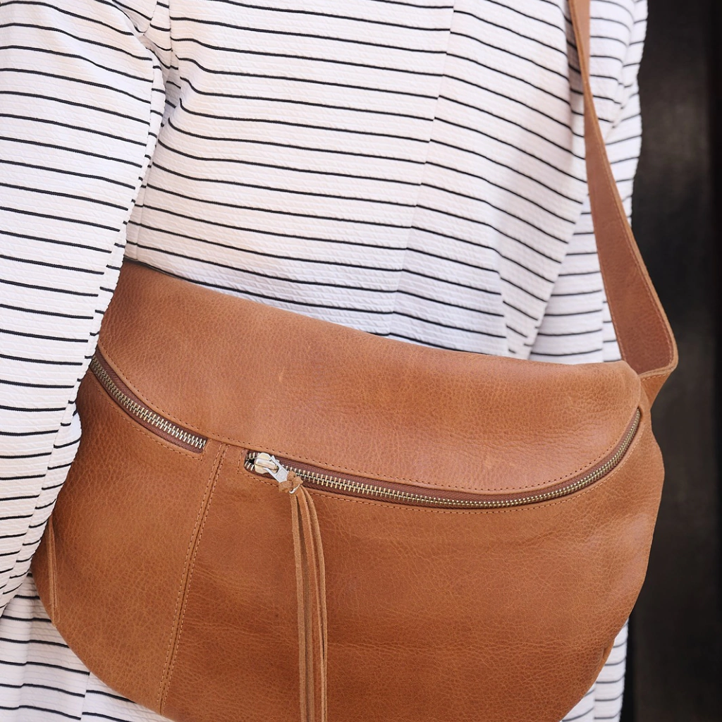Bandolera Nova realizada en cuero vacuno semiengrasado con graneado soft y acabado rústico. Este diseño ergonómico es sumamente funcional, ideal para el uso diario.